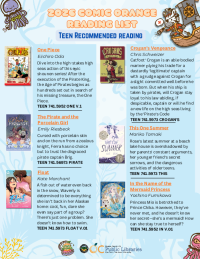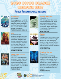 Comic Orange promotes literacy in our community by highlighting our graphic novel collections, celebrating comics, and engaging the community by offering an annual family-friendly event. Stay tuned for our upcoming events!